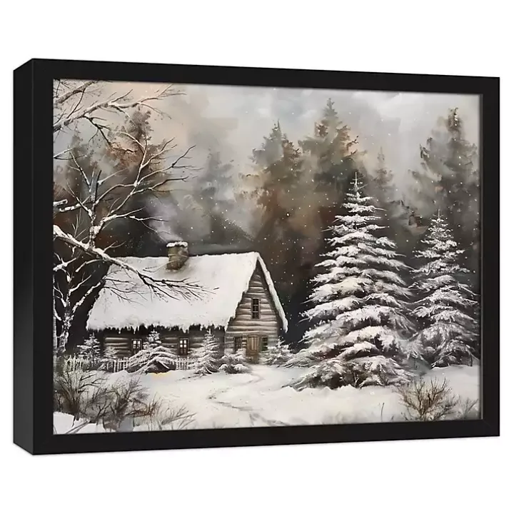 Escape to the outskirts of town with one look at this Neutral Winter Log Cabin Framed Canvas Art Print. This moody woodland scene captures the peaceful and quiet beauty of snowfall.