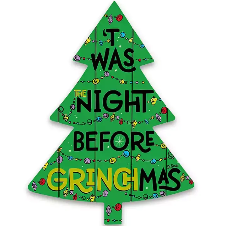 Channel your inner Grinch with this Night Before Grinchmas Tree Wall Plaque. Its tree shape and iconic Dr. Seuss style will put a whimsical touch on your holiday decor!
