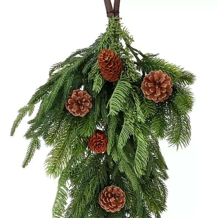 Adorn your doors or walls in holiday cheer! Our Norfolk Spruce and Juniper Teardrop Swag features natural elements that’re perfect for your woodsy Christmas decor.
