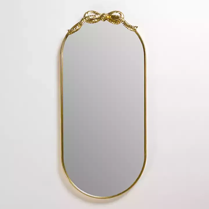 Transform your space with the graceful profile of this Oval Gold Bow Metal Wall Mirror. Its cute, quaint bow detail will put a delightful touch on any wall!