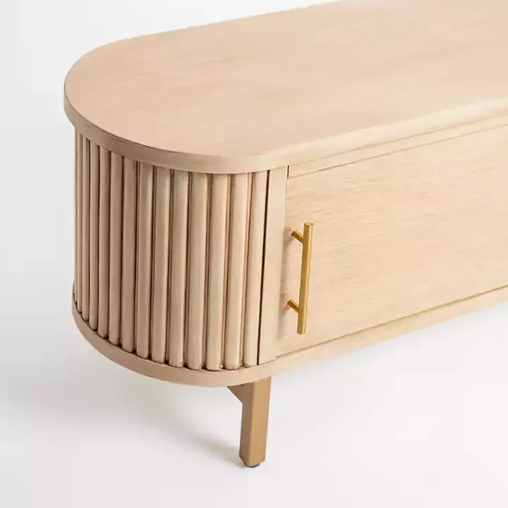 Featuring clean, curved lines and a light finish, this Oval Ribbed Sliding Doors Coffee Table will instantly refresh your living room. A sleek build and contemporary details give this piece an updated look, while its interior compartment offers ample storage space!