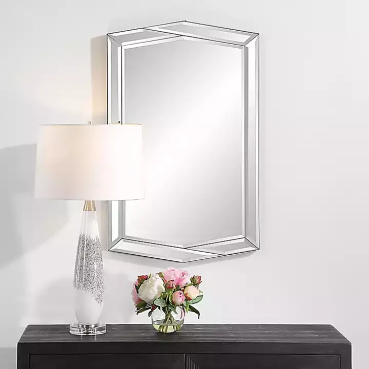 Elevate any space with this chic Overlapping Asymmetrical Bevel Wall Mirror! The asymmetrical design and diamond shape has an elegant look to give your home a sophisticated touch.