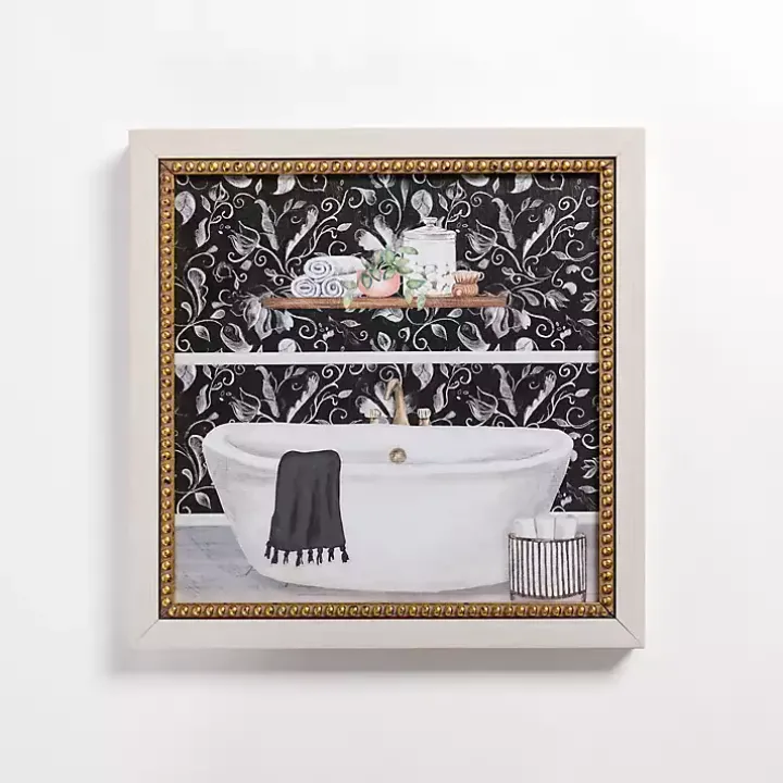Give your bathroom a new, chic look with this Paisley Bathroom Tub Framed Art Print. Its gold beaded frame will add some lovely detailing to your walls!