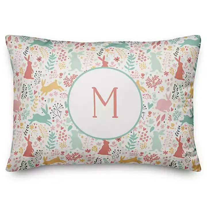 Your front porch will look cheerful and unique with this Personalized Easter Bunny Pattern Outdoor Pillow! Add your name or monogram letter to complete the look!