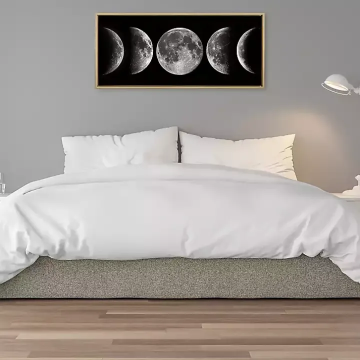 Bring the mystery of the moon into your home with this Phases of the Moon Framed Canvas Art Print. It will put a bold, yet calming element on any wall!