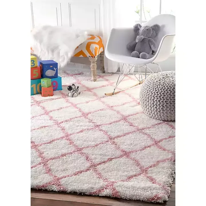 This Pink and White Iliza Trellis Area Rug would look beautiful in a new nursery or toddler’s room. You’ll love the soft colors, simple pattern, and plush texture.
