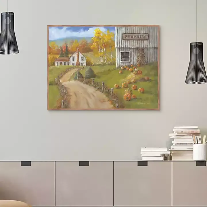 Take a trip to the pumpkin patch with this Pumpkin Farm Framed Canvas Art Print. The cozy, picturesque landscape will bring an autumnal charm to any space!