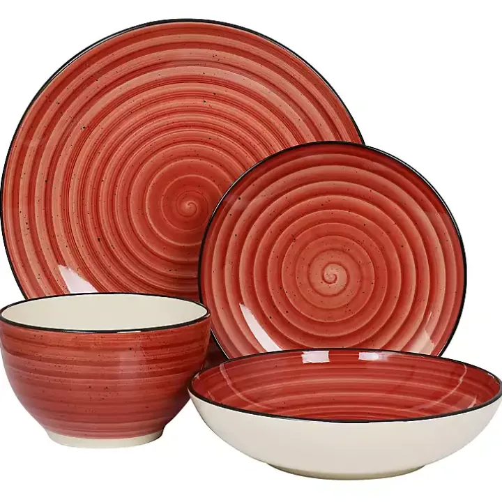The Red Gia Stoneware 24-pc. Dinnerware Set will bring classic, understated beauty to your table setting. Hand painted with swirl and speckle designs, this beautiful dinnerware boasts a natural, artisanal look that you will love.