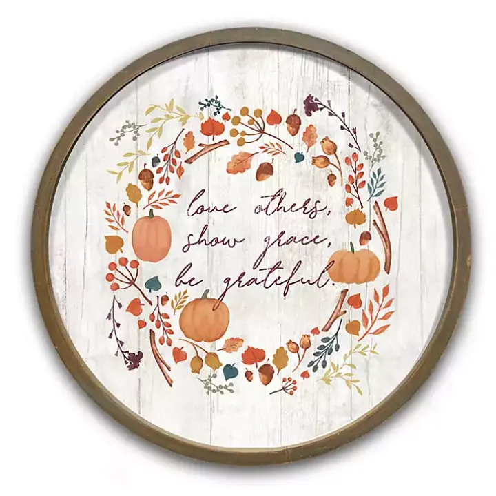 Embrace autumnal traditions with this Round Be Grateful Brown Framed Wall Plaque. Its heartwarming phrase will set a welcoming tone for all your fall festivities!