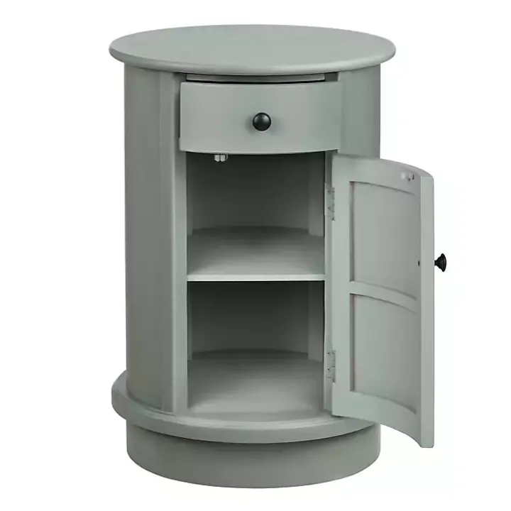The Round Gray Beckly Accent Table flaunts a timeless look that will complement a wide variety of home styles. The interior shelves and single drawer offer ample space to store living room accessories.