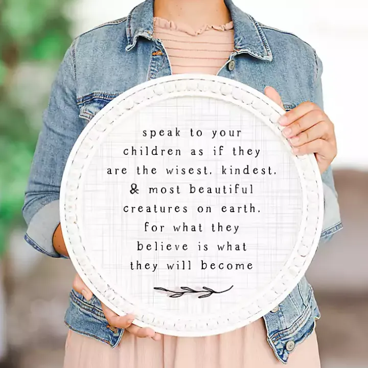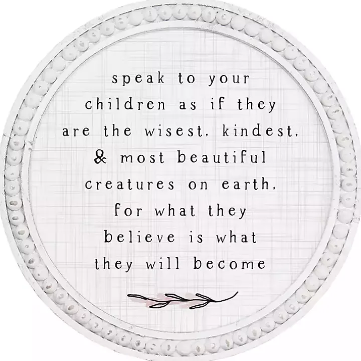 Featuring a sweet, sentimental phrase, this Round Speak to Children Wall Plaque makes the perfect addition to any mother’s home. Its beaded frame will add texture to any wall!