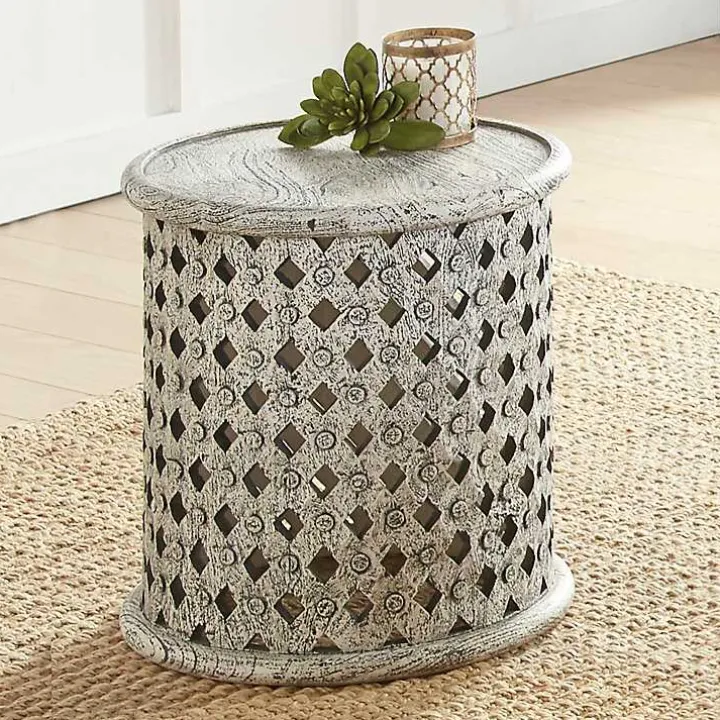 The Round White Wood Lattice Accent Table will bring bold, rustic character to your living room. Featuring an aged alabaster finish, it will look lovely with farmhouse and boho decor!
