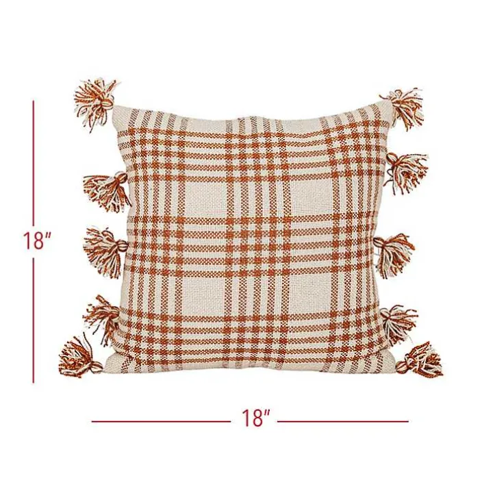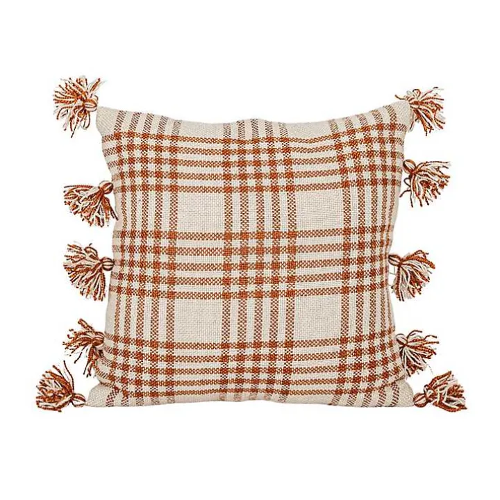 Add a cozy touch to your outdoor space with our Rust Plaid Tassel Indoor/Outdoor Pillow! The warm red and cream hues paired with the plaid design and tassels will perfectly accent your porch or patio!