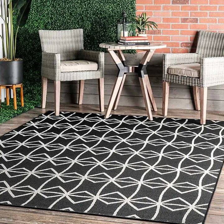 Transform your outdoor oasis with our Sanford Gray Geometric Shapes Outdoor Rug. You’ll love how its geometric dark gray and white pattern looks indoors or out!