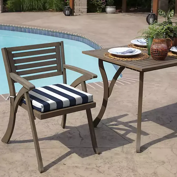Get your patio ready for summer fun with our Sapphire Cabana Stripe Outdoor Seat Cushion! The striped pattern will turn any backyard into a luxury oasis.