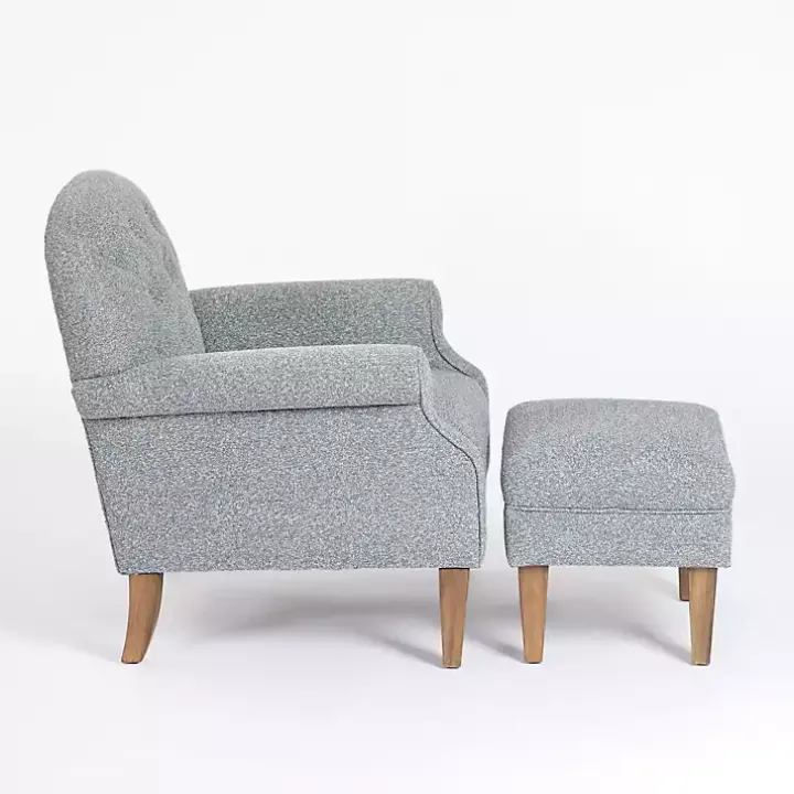 Refresh your space with our Sky Blue Boucle Tufted Chair & Ottoman Set! This transitional style chair features traditional accents, like rolled arms and tufted backrest, with stylish blue boucle upholstery. You’ll love relaxing in this chair with your feet kicked up on the matching ottoman!
