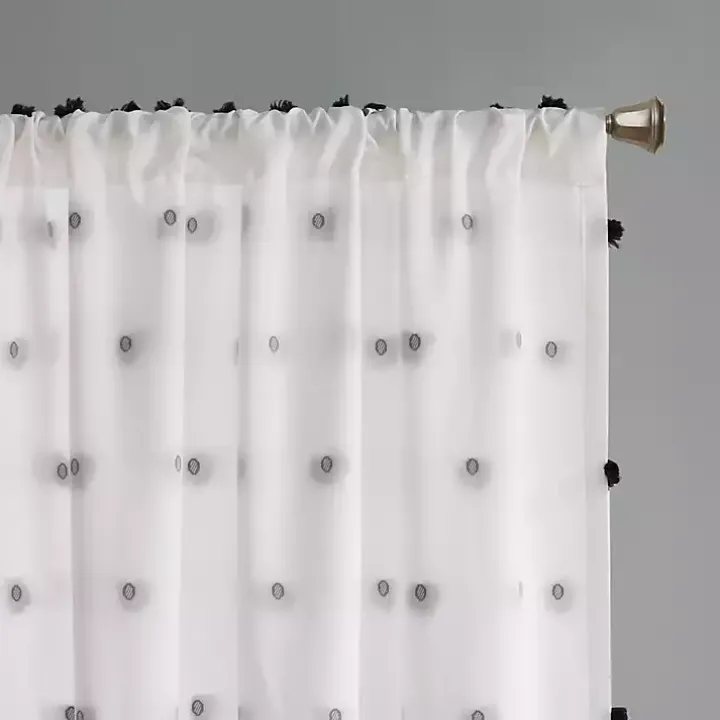 Add texture and a pop of fun design to any room with our Sophie Black Pom Pom Curtain Panel! The lightweight semi-sheer fabric creates an airy look and feel.