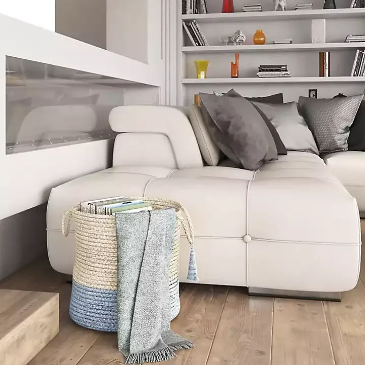 Store those random blankets, toys, or shoes in our Spa Blue and White Jute Basket with Tassel! You’ll love the woven texture and decorative tassel on this basket.