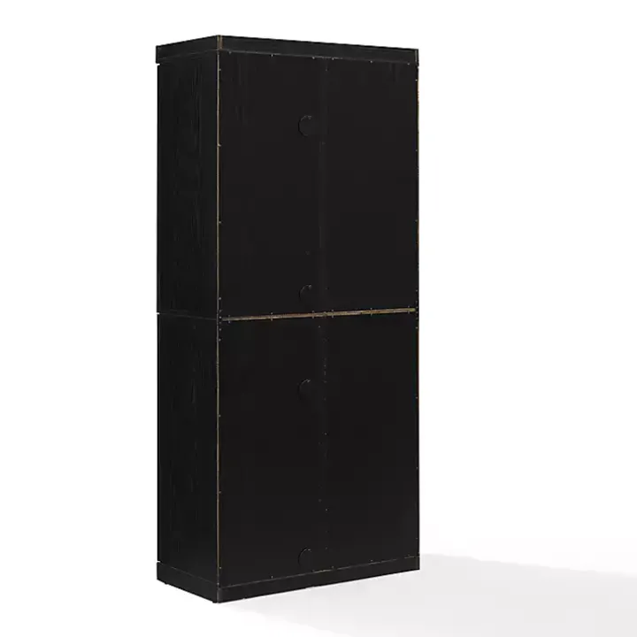 The Tall Black Wood and Glass Door Storage Cabinet is a modular bookcase that fits any space. This modern storage cabinet’s glass doors and wood handles add a touch of elegance to your living room, kitchen, or bathroom. Customize the four interior glass shelves to accommodate everything from dishes to books. Comprised of two modular accent cabinets, this set showcases your items while keeping them organized.