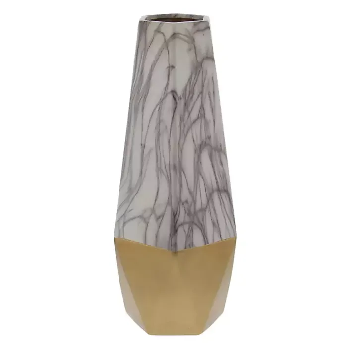 Sleek marble meets matte gold in this Tall Gold Marble Ceramic Vase. You’ll love how its muted gray tones transform this trendy addition into a timeless piece.