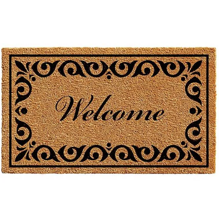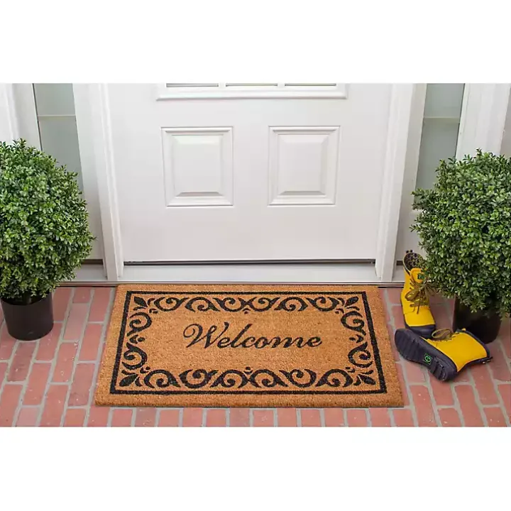 Curvy shapes surround the cursive font greeting on our Tan and Black Coir Scroll Welcome Doormat. You’ll love the elegant touch it adds to your outdoor space!