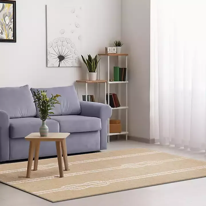 Add a coastal touch to your home with this Tan Nautical Rope Indoor/Outdoor Area Rug. From your kitchen to the patio, this rug will put the perfect summer accent on any space!