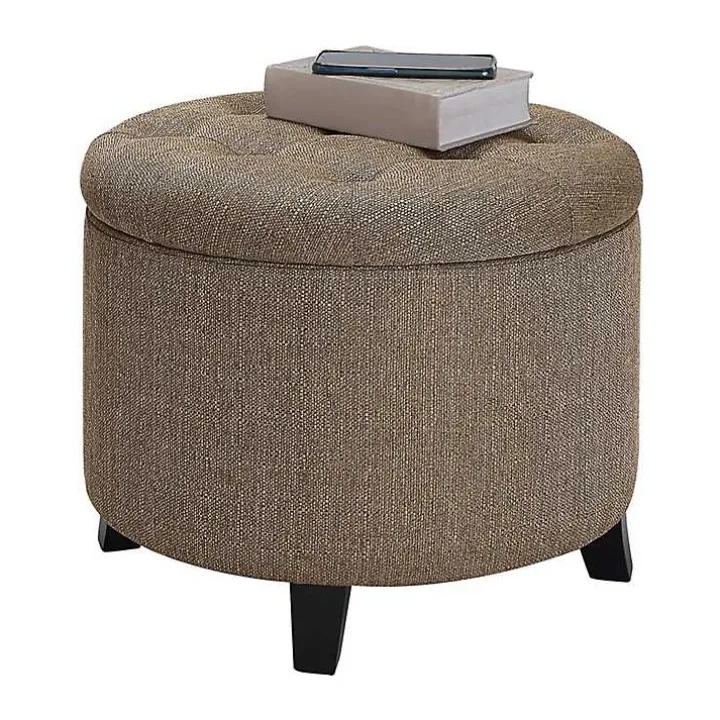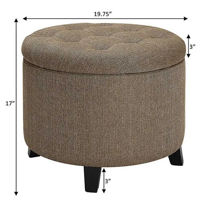 Make the most of your space with this Tan Upholstered Eliza Round Storage Ottoman! This chic ottoman features hidden storage space to keep your room organized. From extra seating to a stylish foot rest, this ottoman has your comfort and style in mind!