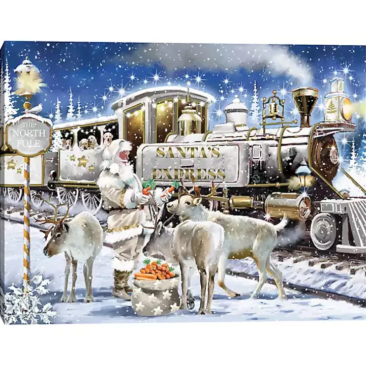 Hop aboard to take a trip to the North Pole! Our The North Pole Canvas Art Print, with white and gold details, would be the perfect elegant touch to your Christmas décor.