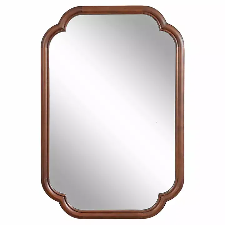 Elevate your decor with our charming Walnut Wood Scallop Wall Mirror! Between its size and lovely design, this mirror is perfect as a bathroom vanity mirror or as a decorative statement anywhere in your home.