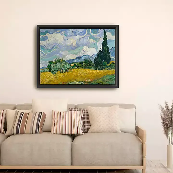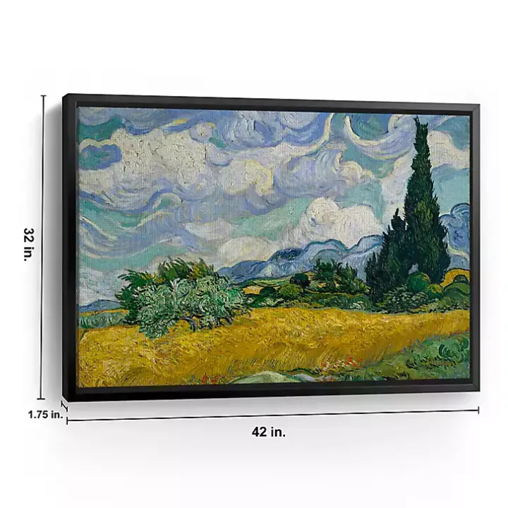 The Wheat Field with Cypresses Canvas Print will bring the wonderful artwork of Vincent Van Gogh into your home. This canvas art print showcases the famous painting, “Wheat Field with Cypresses”, originally made in 1889. Finished with a black frame, it’s sure to transform any room into a historic art museum.