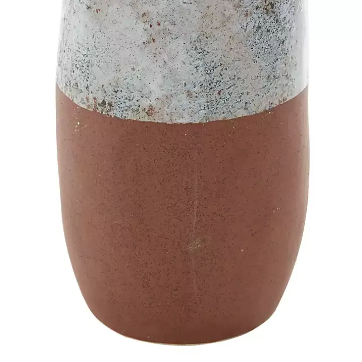 The White and Rust Brown Ceramic Vase complements any farmhouse home. The bubbled, marble-like glaze and exaggerated handle add a unique statement to any room.