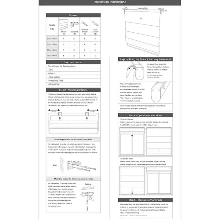 - Head rail measures 35L x 1.13W x 2.5H in.