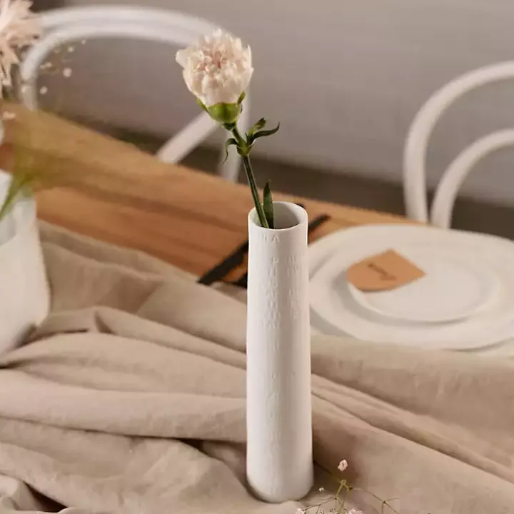 Add a sophisticated, modern touch to your space with this White Ceramic Flower Names Embossed Vase! This tall and slender vase is perfect for stems or small bouquets. You’ll love the look of the embossed flower names in Latin!