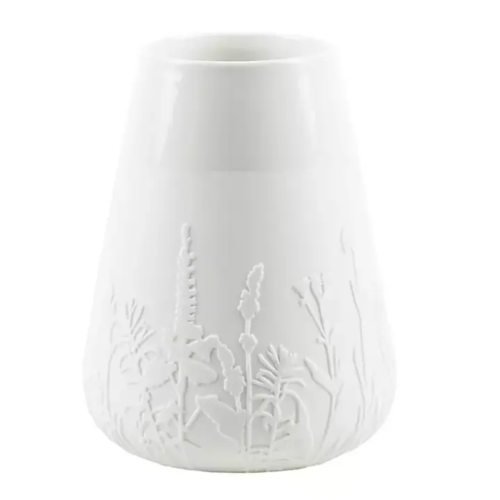 Display your favorite flowers in this White Floral Meadow Embossed Vase! The unique shape makes this vase perfect for small bouquets. You’ll love the decorative touch of the embossed floral details!