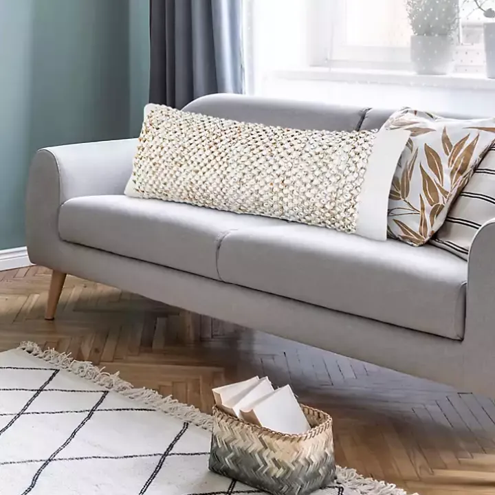 Make your seating area look inviting with the help of this White Jute Hand Knotted Lumbar Pillow! You’ll love the soft neutral tones and the textured details.