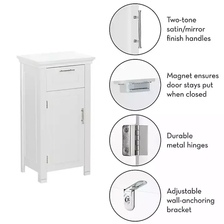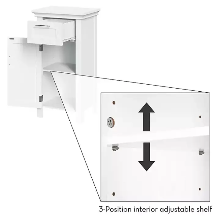 This White Single Drawer Cabinet is perfect for some stylish extra storage. Its drawer and shelves are great for organization in your bathroom or bedroom! Plus, the light, clean finish will go with any decor.