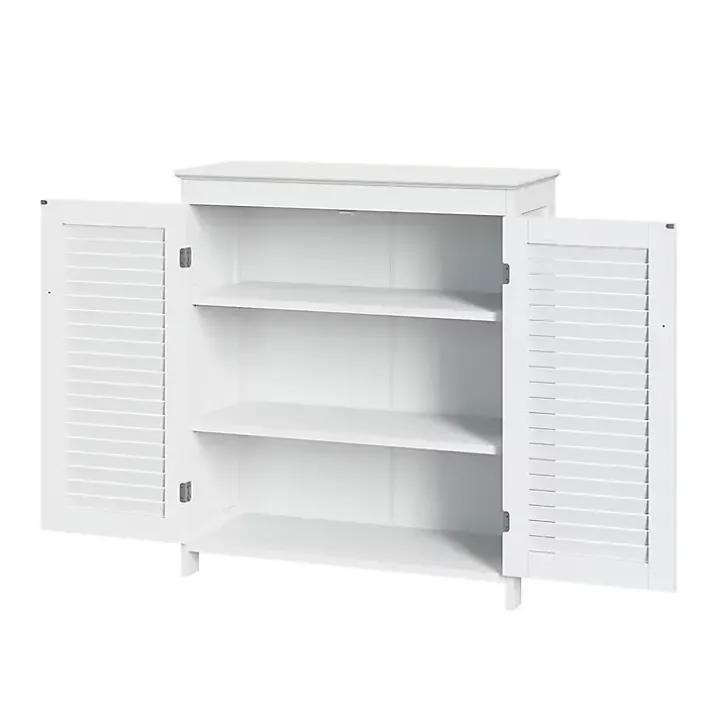 You’ll love our White Slatted 2-Door Bathroom Storage Cabinet for all your storage needs! This cabinet makes it easier to keep everything clean and organized, from extra toiletries to towels!