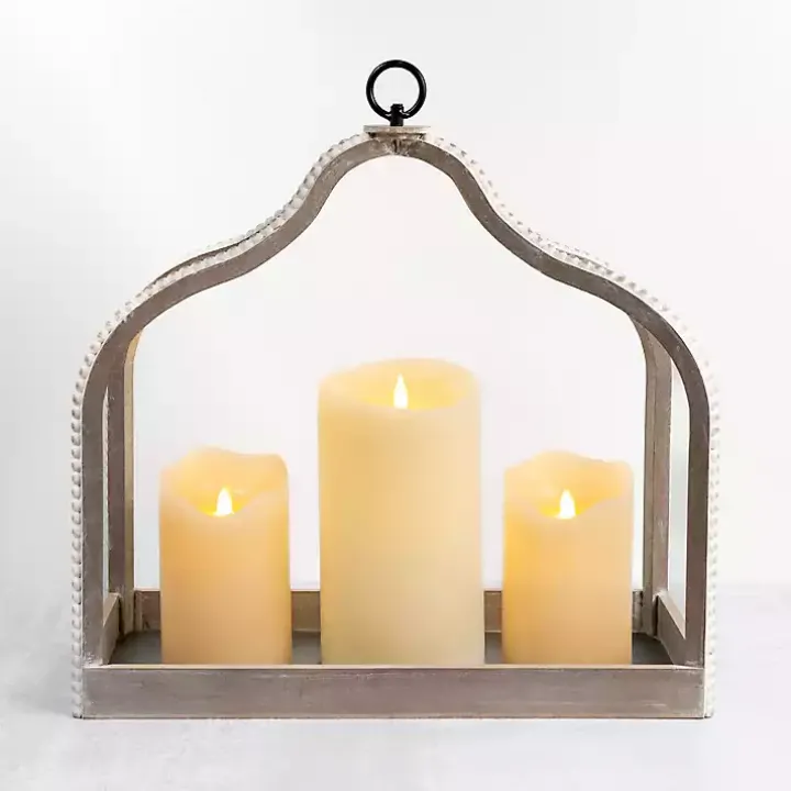 Our Whitewashed Wood Beaded Open Lantern is sure to incorporate rustic flair into your decor. Displaying your warm LED candles, it will make a glowing centerpiece on any tabletop.