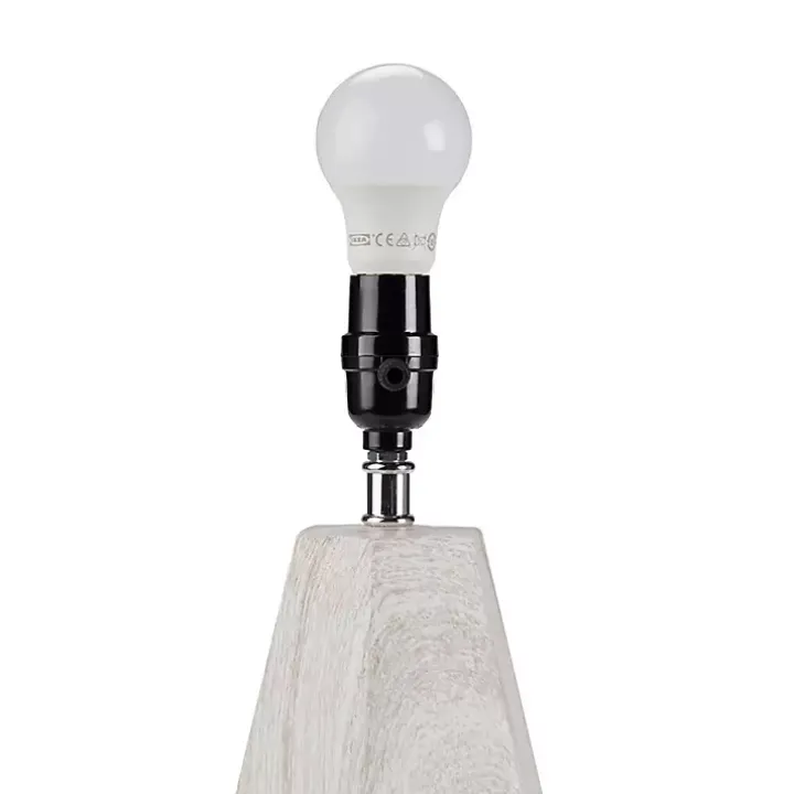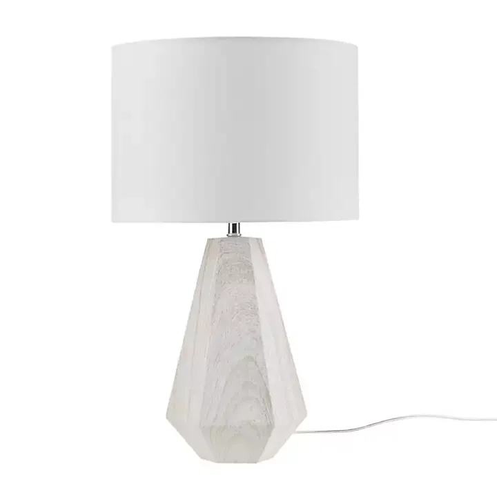 Embrace contemporary elegance with this Whitewashed Wood Flynn Table Lamp! Its modern faceted design shines in faux wood crafted from durable resin. A soft glow emanates from its shade to elevate your space effortlessly.