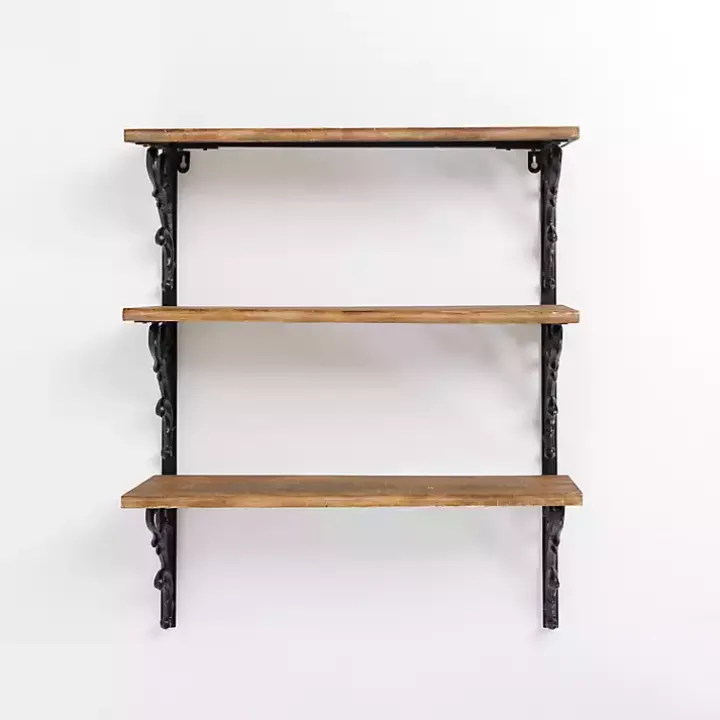 Put your personal touch on your wall decor with this Wood and Iron Scroll 3-Tier Wall Shelf. It’s a beautiful way to display your favorite photos and knick knacks!