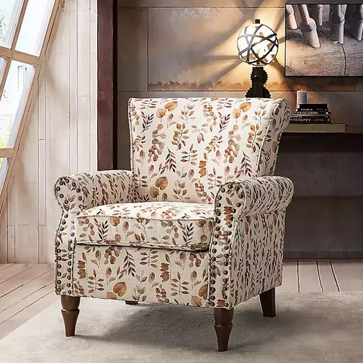 Bring timeless elegance into your space with this Yellow and Orange Leaf Upholstered Accent Chair. With its botanical design and classic silhouette, it makes a beautiful statement piece!
